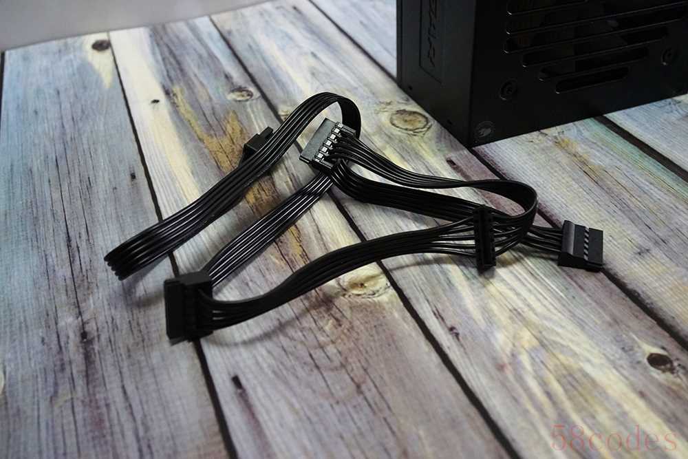 像SATA、PCI-E等常用的模组线上都配有多个接口,接口之间的距离也比较合理,所以在实际使用中并不需要把所有线缆都插上,只要按照实际所需最小化使用即可,这样才能避免装机后外观上的紊乱。