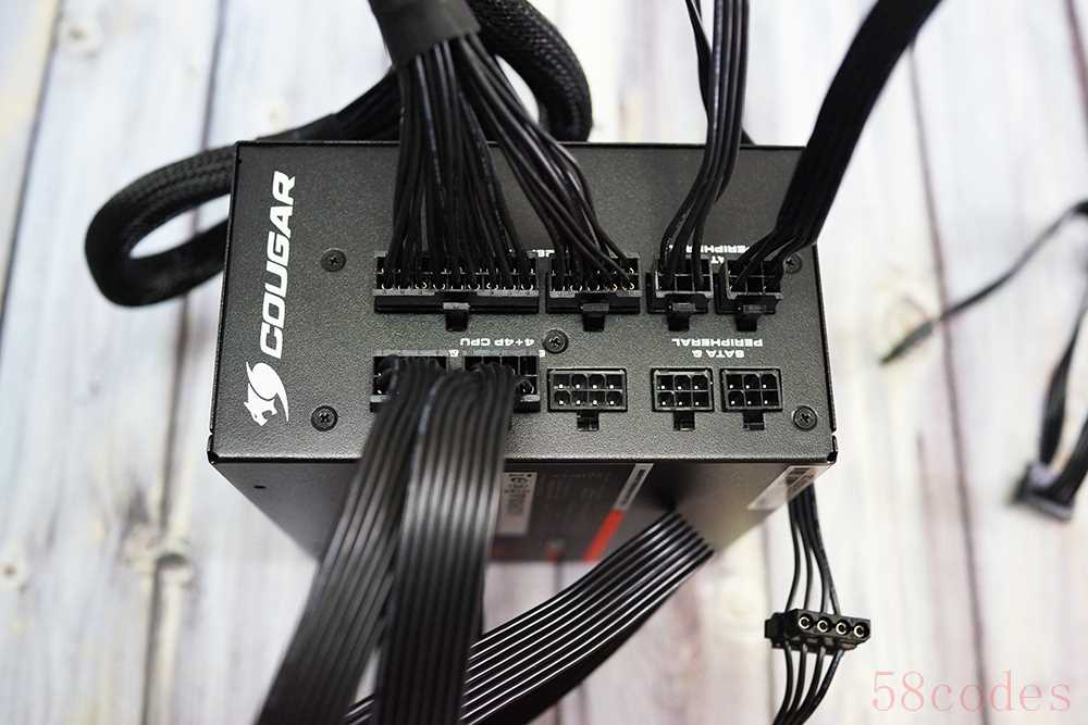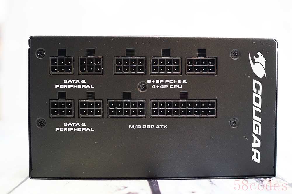 再来看模组插口,骨伽GEX电源总共提供了四组HDD/SATA的6P接口,三组CPU/PCIE的4+4P接口,一组28P ATX M/B。这些接口从数量上来看是绰绰有余的,也能够满足以后扩展的需要,毕竟一个好的电源往往要用上七八年甚至更长的时间,中途电脑主机可能会面临多次升级换代。