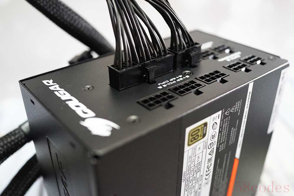 骨伽GEX系列电源的表面经过了黑化处理,侧面有立体的骨伽LOGO,比起常规的印刷标识看上去更具质感。