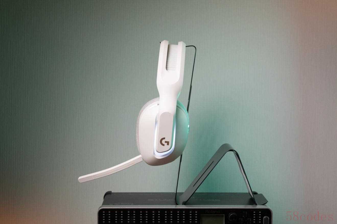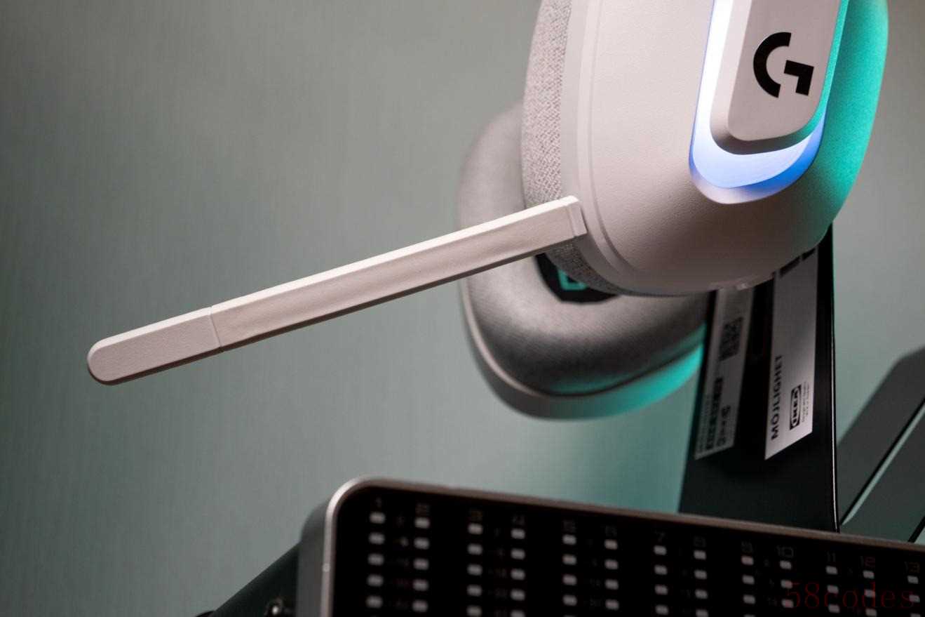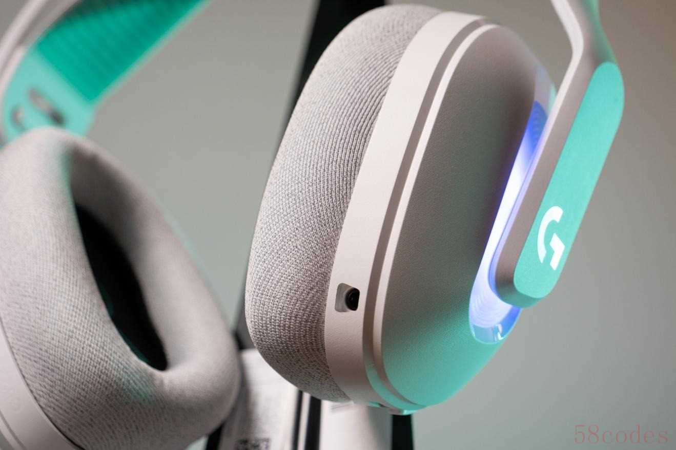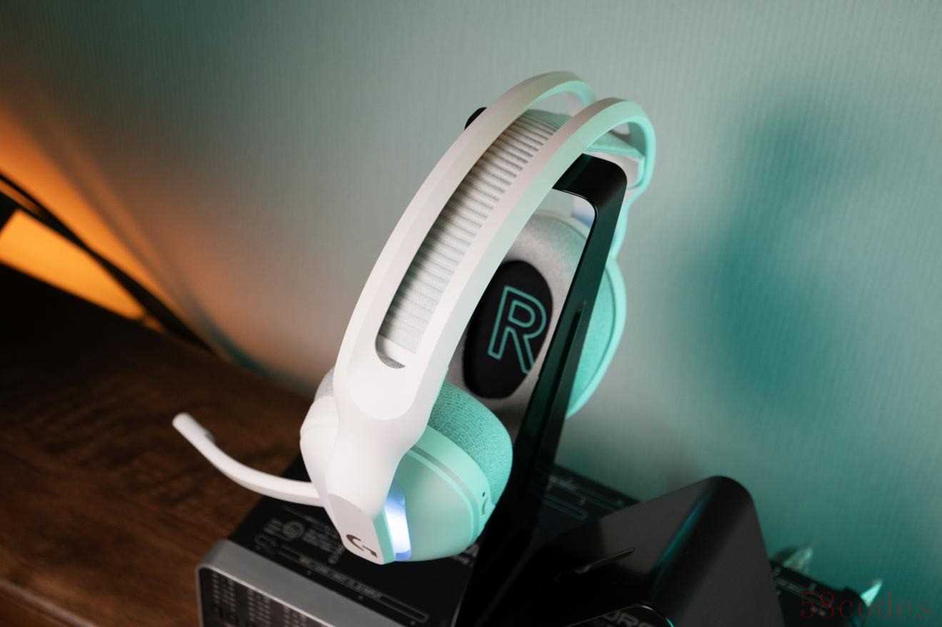 最后我们来聊一聊罗技G522 LIGHTSPEED无线游戏耳机。它采用的是悬浮式头带 + 双支柱设计,我这款白色的悬浮式头带内侧是亮青色,搭配左右两侧有炫彩的 RGB 灯效,作为电竞耳机来说,辨识度相当高。