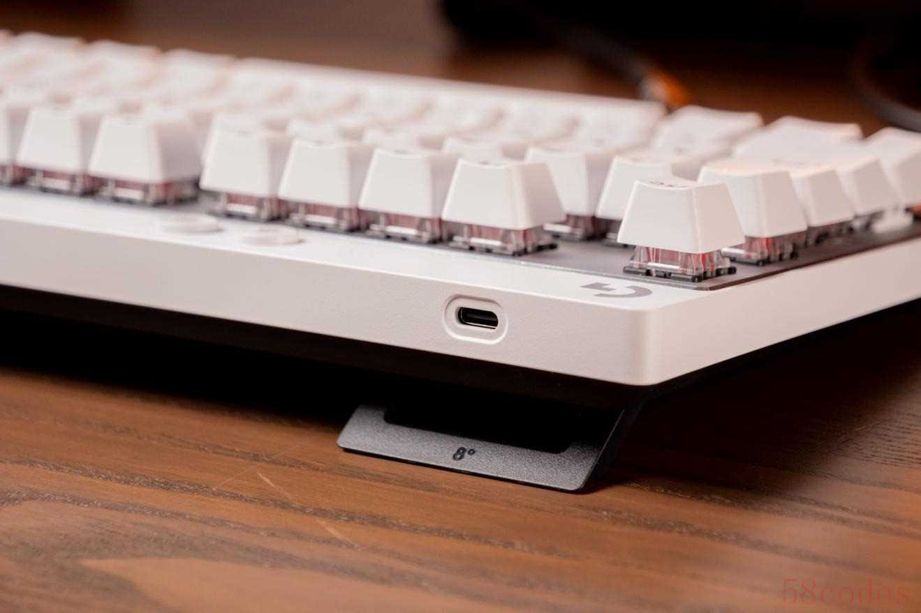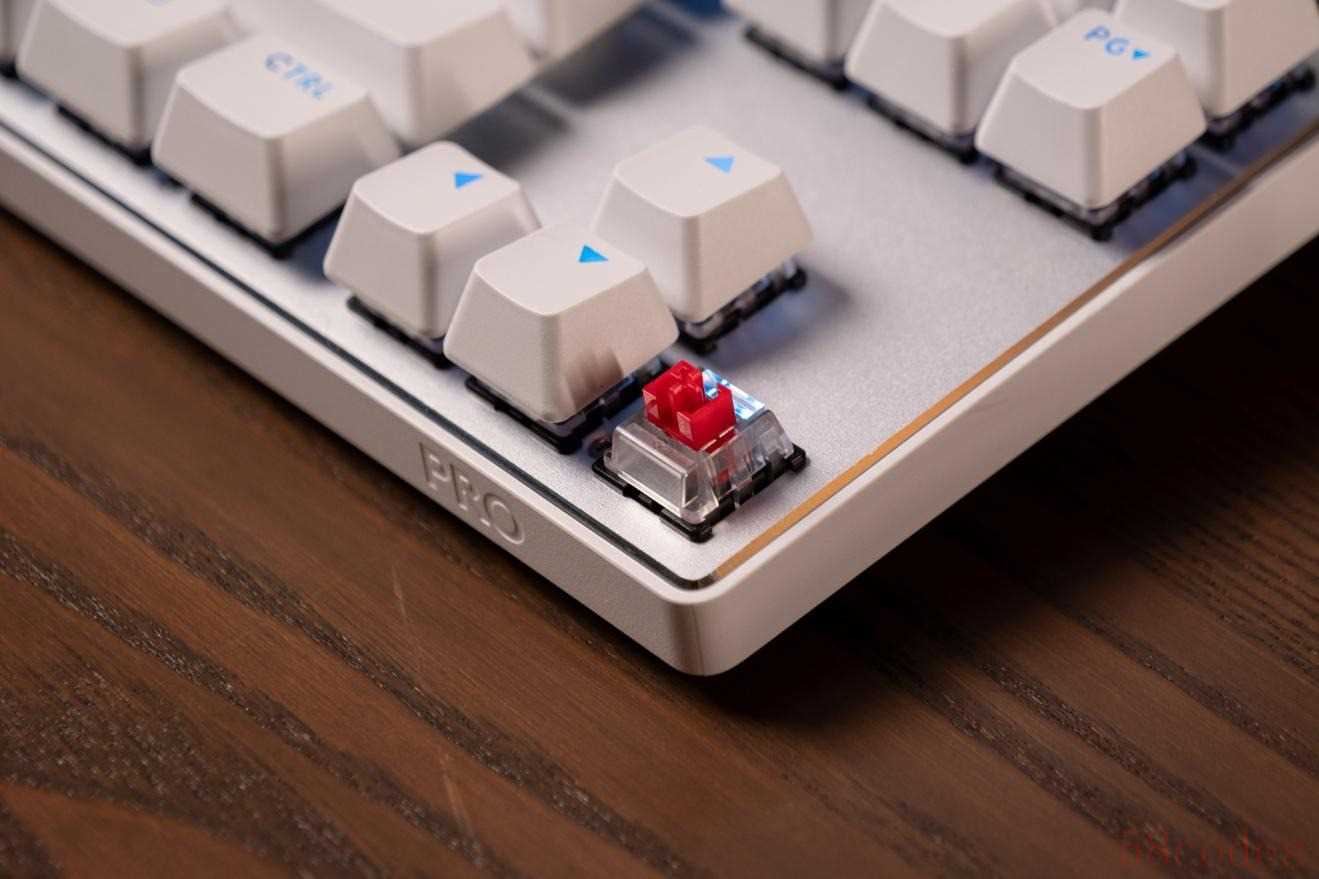 它采用的是 87键的 TKL 紧凑布局,也就是去掉了右侧的数字小键盘。因为我自己的键盘都是这个布局,所以适应的非常快,像手肘流FPS玩家快速甩枪的操作,空间不够是真的会鼠标撞键盘。紧凑布局的键盘就完全没这个烦恼,手腕放得开,自由度也更高。