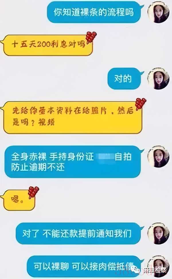 在现实生活中,“裸贷”多针对年轻女性,尤其是在校女大学生,由于无节制的消费观念,为获得金钱的轻松感,在进行借款时,以手持身份证的裸体照片或者视频替代借条作为担保,由于“裸贷”利息畸高,远远超出在校学大学生的承受能力,当发生违约不还款时,放贷人就会以公开裸体照片和与借款人父母、朋友、同学等联系的手段作为要挟,逼迫借款人还款。以“裸”换“贷”,既有违公序良俗,也容易让自己沦为违法犯罪的受害者。