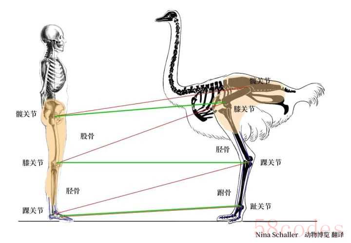 首先鸵鸟有两只大长脚,而且骨骼精奇。我们看到的鸵鸟大长腿实际是它的脚,看起来像膝盖的部位其实是脚踝,而它的腿尤其是大腿基本上是被羽毛盖住,它只用脚趾走路。