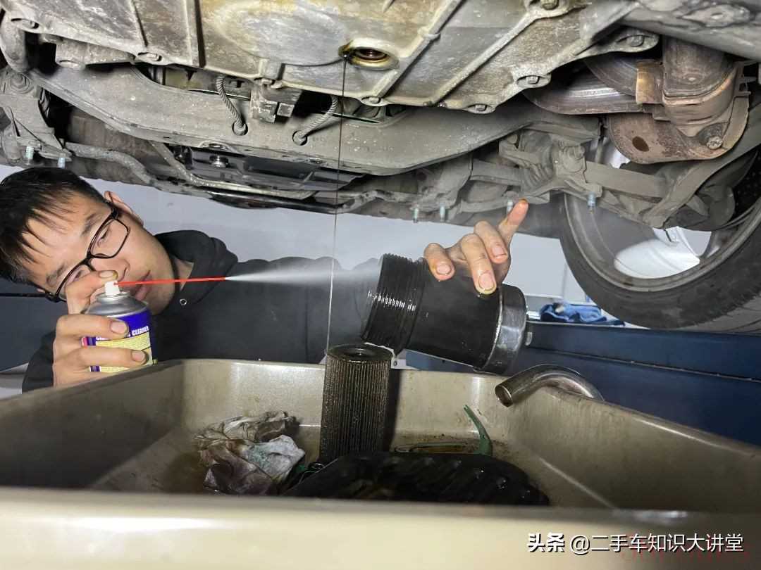 加满一次新的变速箱油,怠速运转一阵后,将其再次放出,周而复始,循环几次,原来的老油也被我们逼出来了。