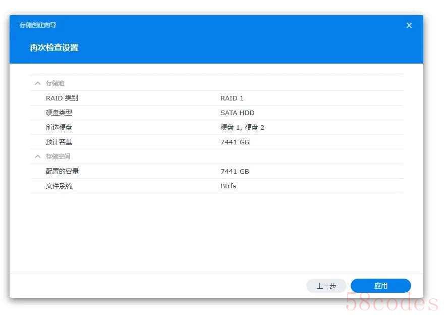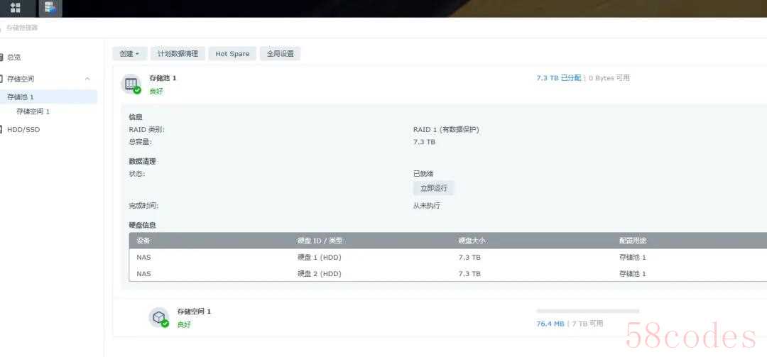 这时NAS设备的存储空间就划分好了,两块硬盘都已经添加完成,做的是RAID1。