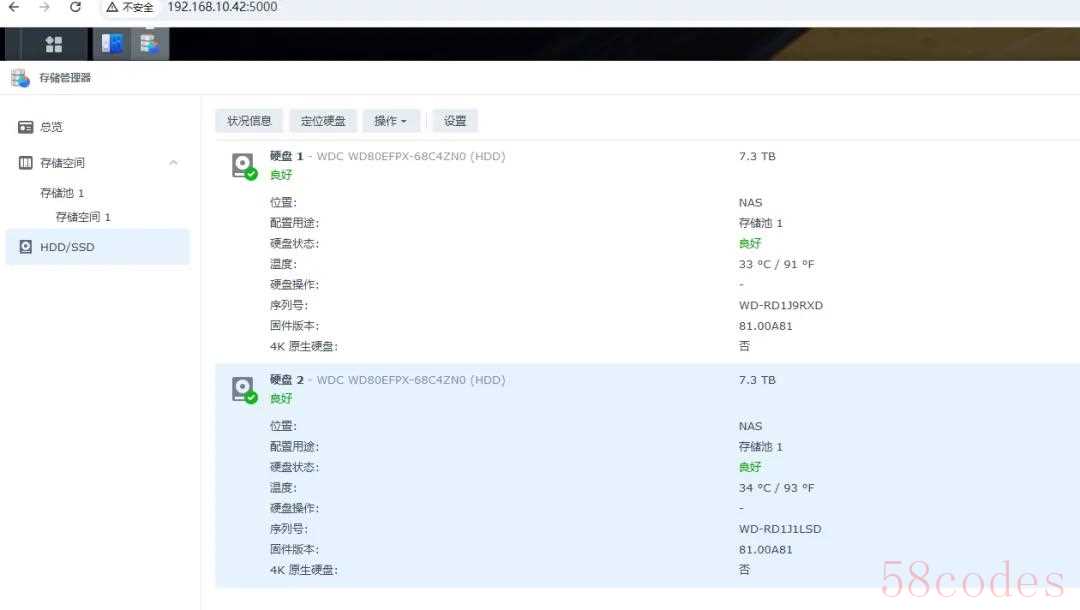 解决过程客户一个DS224+,外加两个8T WD的红盘。