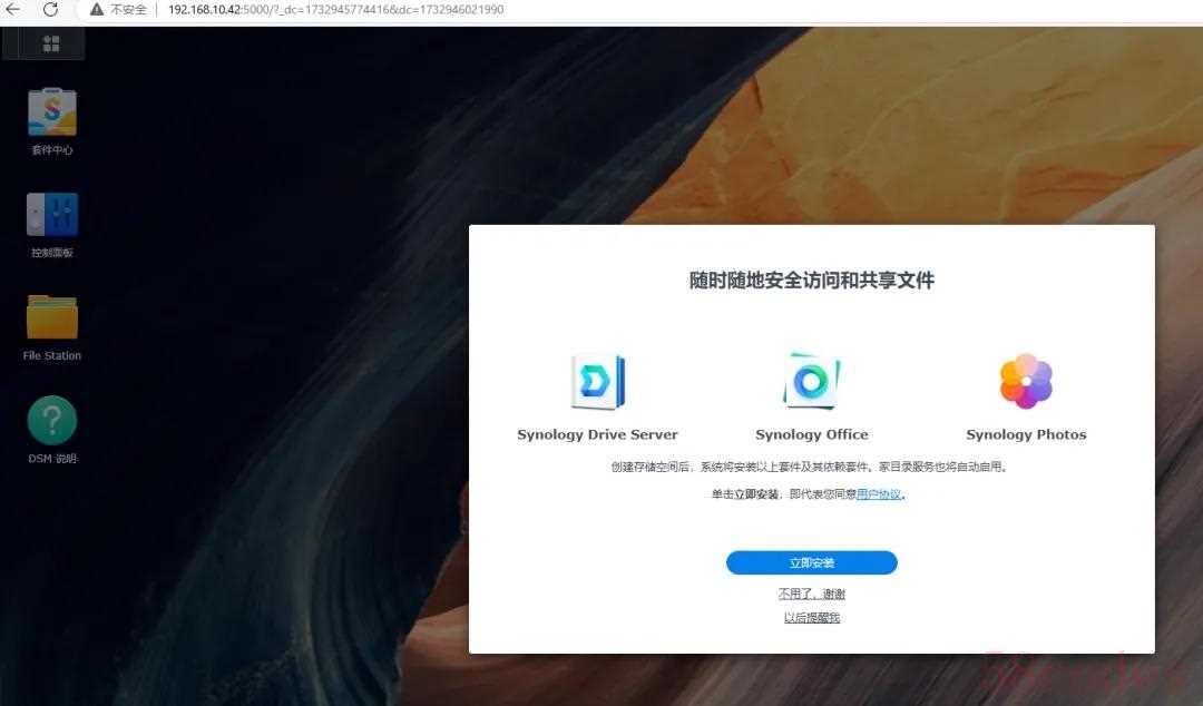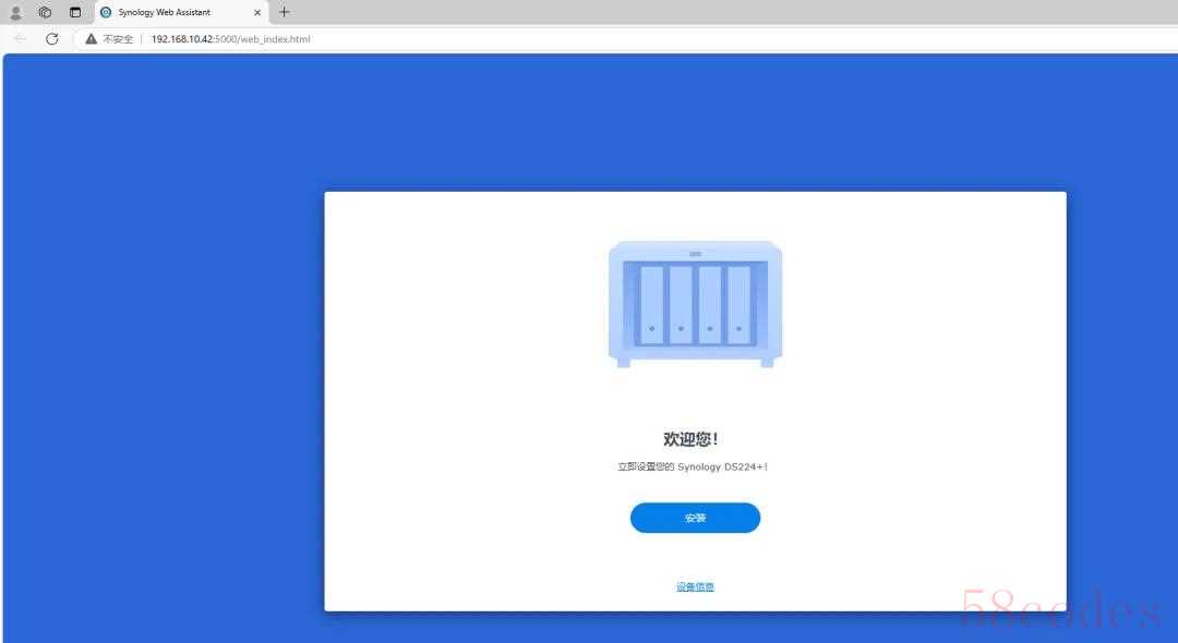 当我们点击系统未安装, 这时就会跳转到网页,通过网页来完成,NAS设备的操作系统的联网安装,这时要保证NAS设备是可以正常上网。这时我们直接点击安装。