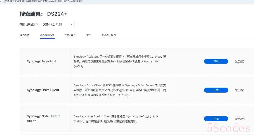 我们不需要下载这个DSM7.2.2操作系统到电脑,我们直接,选择桌面应用程序。找到Synology Assistant群辉助手软件。