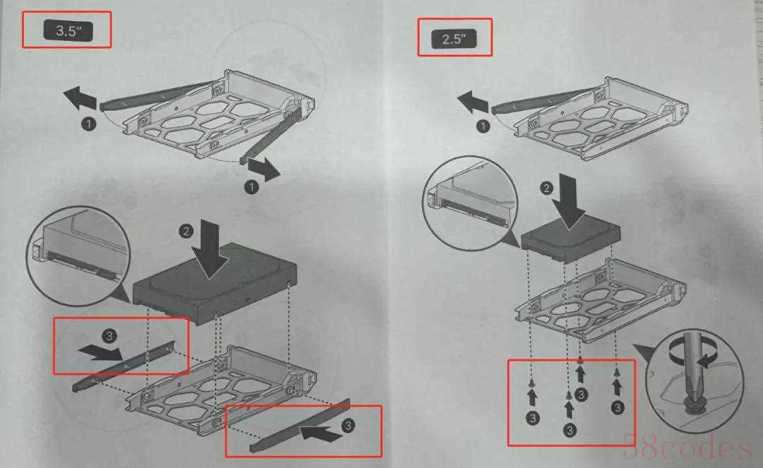 2. "安装硬盘":将硬盘插入硬盘槽,确保硬盘卡扣到位,然后固定螺丝。