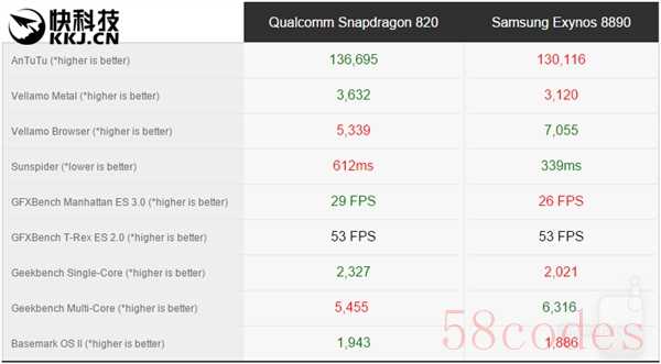 在之前的理论性能测试中,骁龙820和8890可谓平分秋色,虽说在分数上你来我往略有差别,但对于用户在比如滑动流畅、玩游戏卡不卡、软件加载速度这些常用情景方面几乎是感知不到区别。