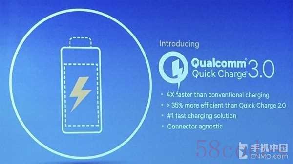 据美国高通介绍,Quick Charge 3.0充电速度是传统充电方式的四倍,是Quick Charge 1.0的两倍,比Quick Charge 2.0充电效率高38%。有了Quick Charge 3.0,消费者就能更快地完成充电,抓起手机做别的事。