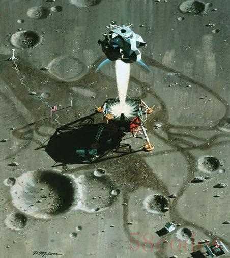 当返回舱达到月球的第一宇宙速度时,此时飞船会围绕着月球转动。而在月球轨道上,控制舱以及服务舱停留在这里等候着对方,等到两者汇合时,登月舱会重新与服务舱以及指令舱对接。