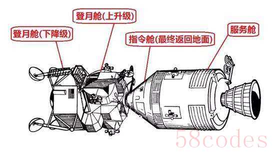 登月舱又分为两个部分,一个是下降阶段的登月舱,一个是上升阶段的返航舱。