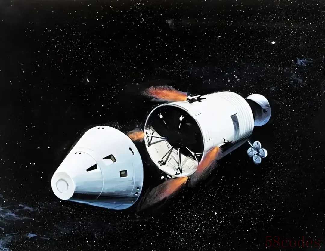 服务舱装有一台 “主发动机”,当指令舱与服务舱组合体调整到合适的月球轨道后,主发动机点火,产生约 93 千牛的推力,将组合体加速到 “月球逃逸速度”,使其脱离月球引力束缚,进入一条 “地月转移轨道”—— 这条轨道像一条 “太空高速公路”,能让飞船借助地球引力,逐步向地球靠近。在返回地球的途中,服务舱会持续调整飞船姿态,确保返回舱朝向地球方向,同时为指令舱提供电力、氧气和推进剂。
