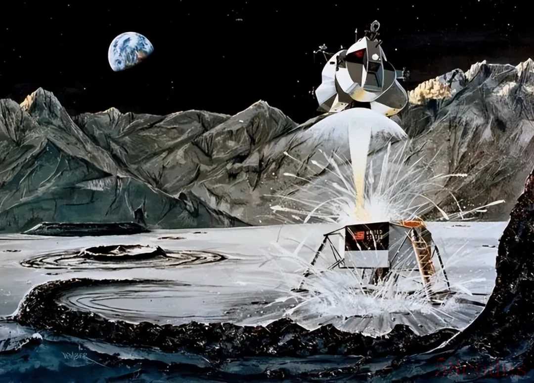4. "启动上升发动机:" 这是最关键的一步。宇航员操作登月舱上的 "上升发动机 (Ascent Engine)"。这个发动机原本是设计用来从月面起飞的。