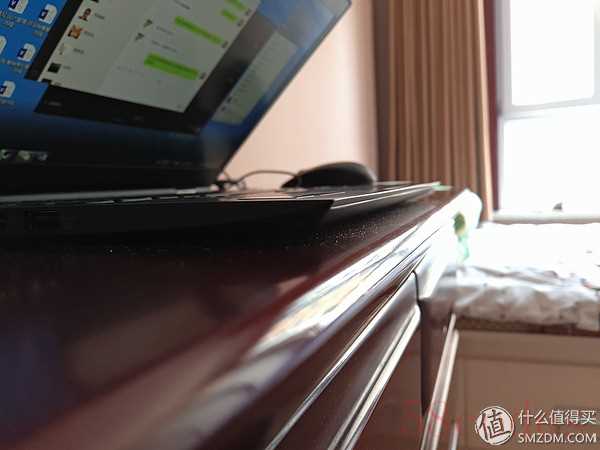 C面的边沿做得比较薄,我打字的时候,胳膊压在边缘上,略硌手。如下图: