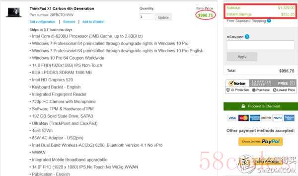 因为开始就确定了要海淘,等到美版的X1 Carbon上市,我在传说中的7通道比价之后,发现按照我的需求配置,两者价差不大,并且X1 Carbon一直邪恶地冲着我招手(其实就是内心想买高端系列……),最后还是决定下单X1 Carbon。下面放配置截图: