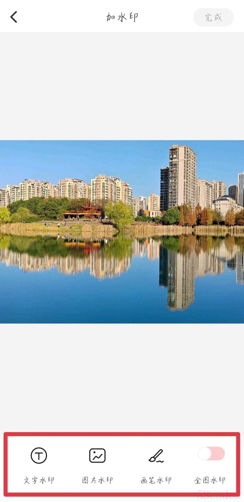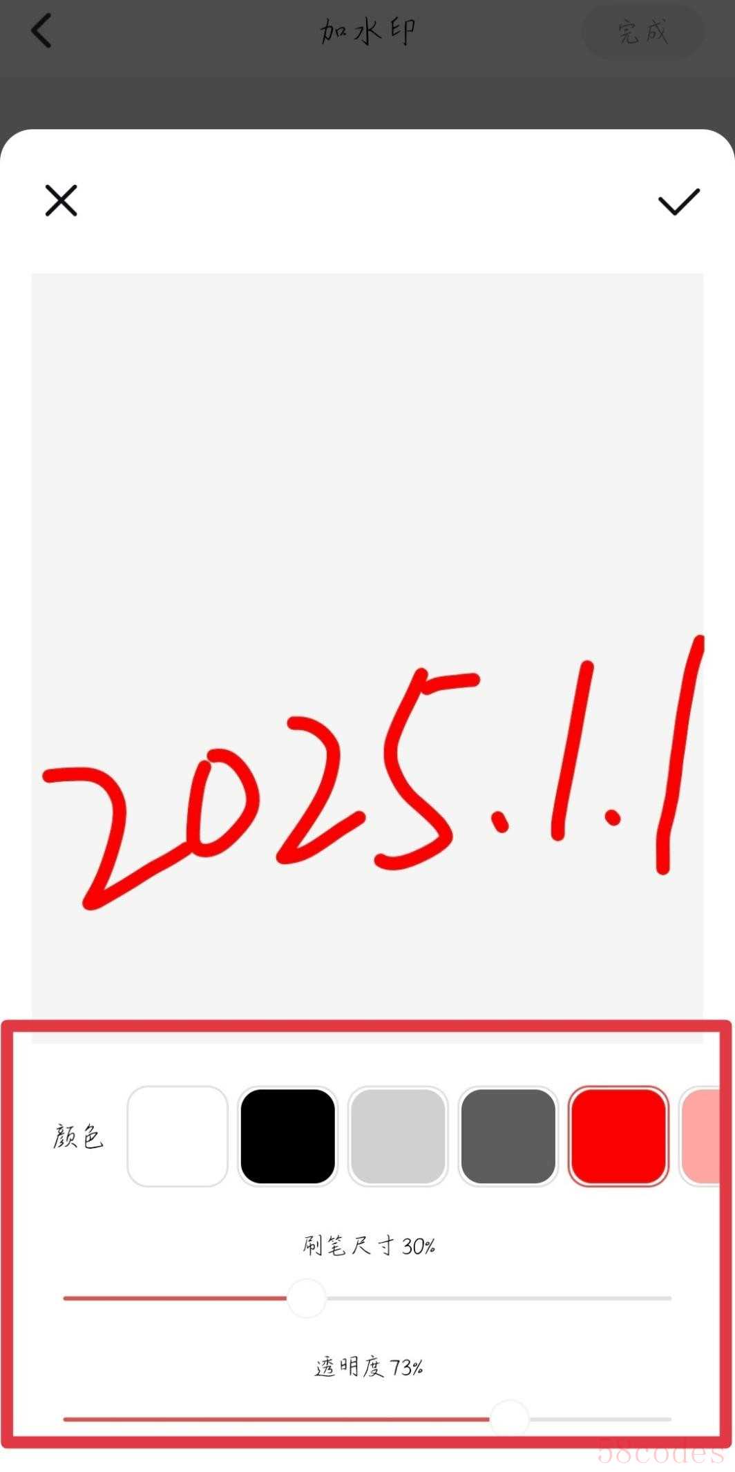 画笔水印:通过调整刷笔尺寸、字体颜色和透明度来自制个性化水印效果,并且其位置和大小也按需求喜好来调节。