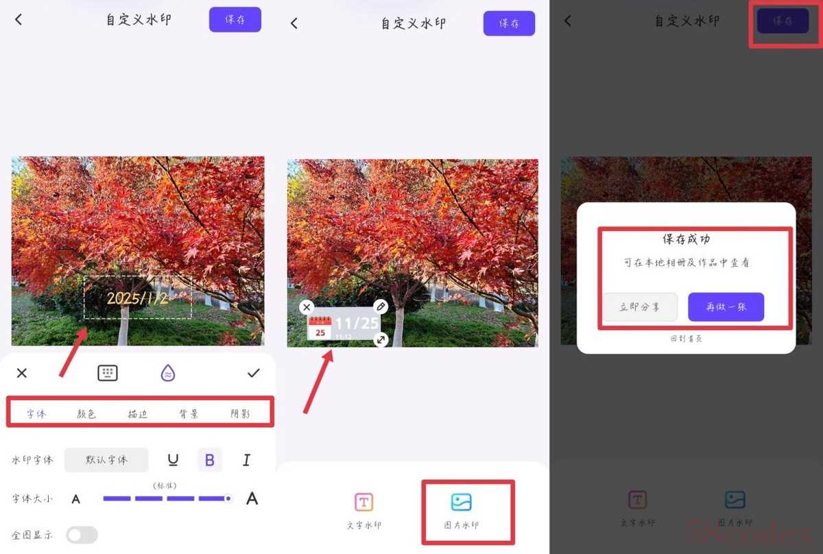 自定义添加水印也不在话下,有分文字和图片水印,这里只需输入想要的日期或添加带日期的图片即可,无需繁琐步骤,有效满足多样化和个性化的水印需求。