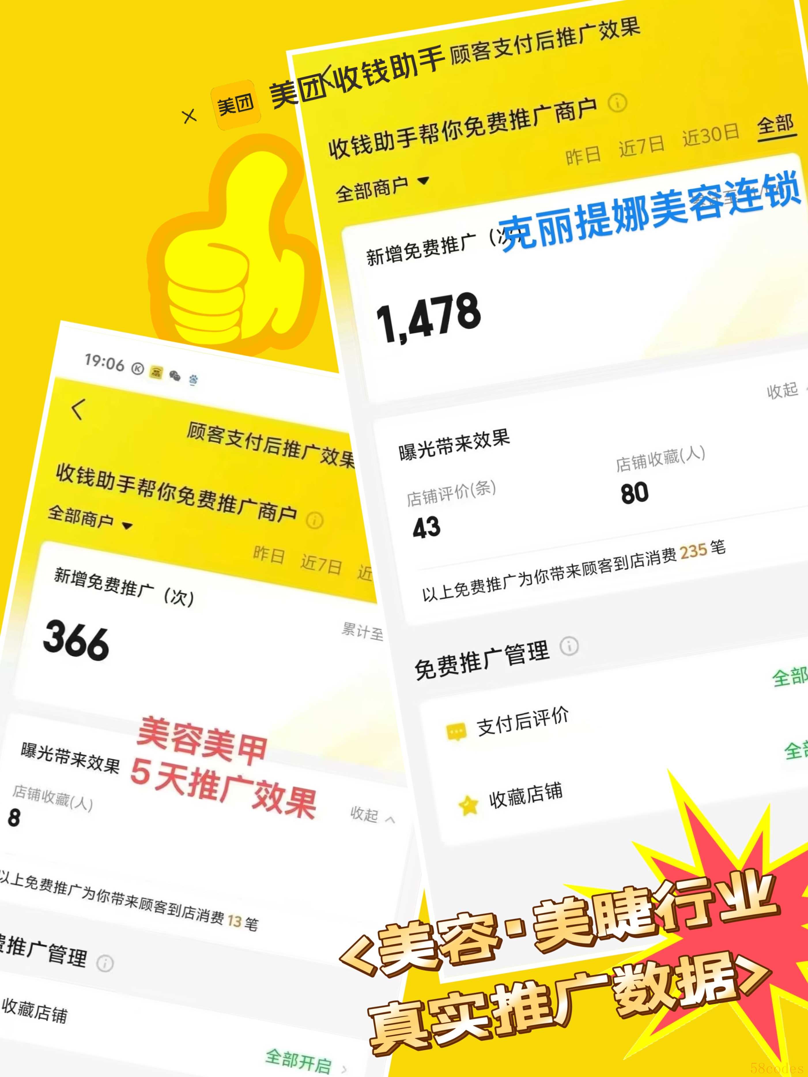 提升店铺曝光:顾客付款后评价可同步至大众点评,提升商户点评星级与点评数,增加店铺排序和曝光机会。每收款一笔,美团在线上免费帮商户推流一次,交易笔数越多曝光越大。