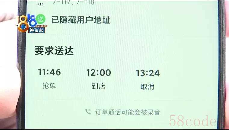 胡师傅:“中午接了六个单子,有两个单子是千寻家的,他是出不了餐,我人在那里的时候,打电话给平台,他说他管不了,反正他的意思是,你既然接了单,那你就自认倒霉,我上报异常了,这个单实在做不出来,我把其它四个单子送好了,送好我回来,这两个单子已经超时了,我就送不了了。”