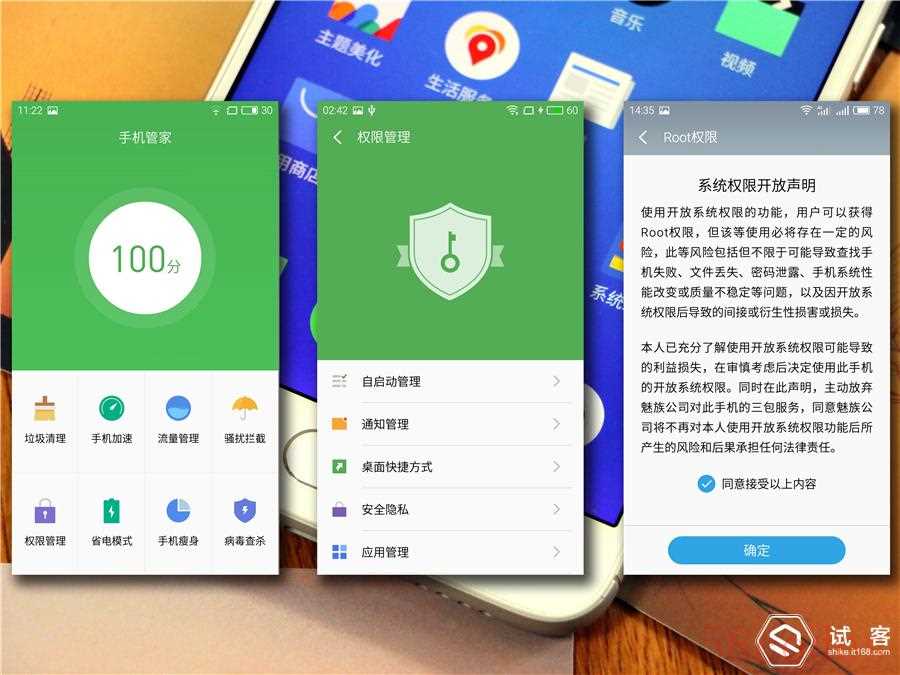 Flyme 5.1系统自带的“手机管家”整合的功能非常丰富,可以进行 垃圾清理、内存整理、应用权限控制和杀毒、防止骚扰等操作。权限管理功能,可以对手机内的软件,进行禁止应用自启动或相互启动的操作,还有禁止应用推送消息等。用户安装的软件多了,可以通过这个功能,优化系统启动项,从而达到省电的目的。
