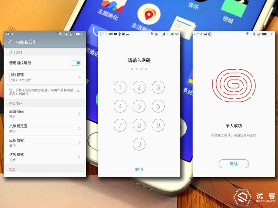 魅蓝 note3配备了出色的mTouch 2.1正面指纹识别模块,指纹解锁最快0.2秒,同时支持触控返回等操作,体验效果还是非常不错的。并且还支持支付宝支付、Flyme应用加密、mPay支付。在录入指纹的时候,需要先设置屏幕密码,然后在录入指纹。其实这样的好处是,防止指纹识别功能异常,或者什么意外情况下无法使用指纹的另一种解锁保险方案。