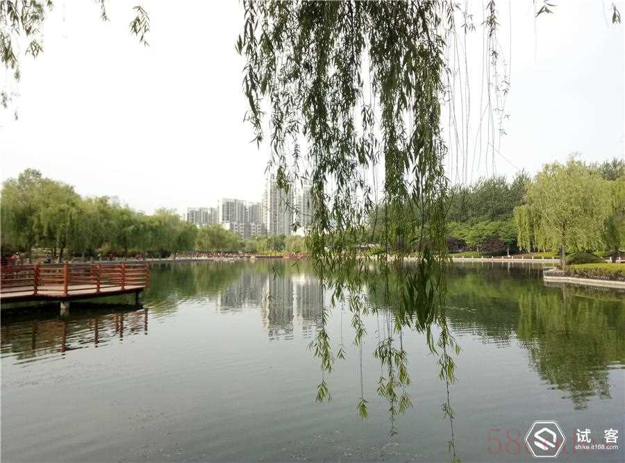 站在柳树下,眺望一下远方,湖面博文以及建筑物的倒影清晰可见。