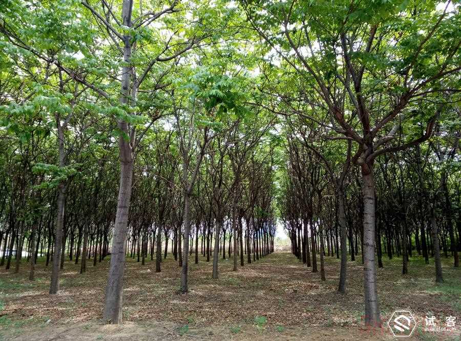 充满生机的杨树林,纵横穿插,使用HDR模式拍摄,景深与树荫下散落的阳光层侧分明。