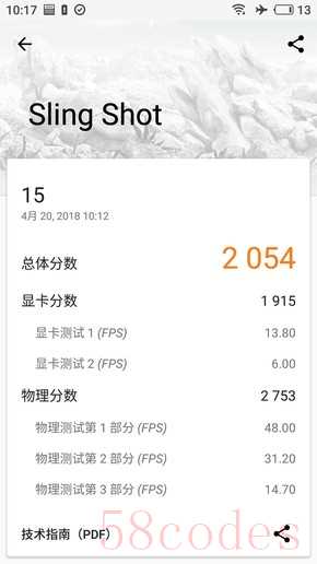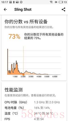 3DMark测量的则是手机芯片在GPU运算方面的能力。通过3DMark Sling Shot实际测试来看,搭载骁龙660的魅族15跑分达到了2054分,超过了3DMark数据库中73%的智能手机。