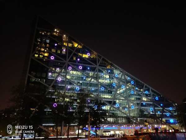 魅族15的双摄被魅族称之为暗光双摄,支持虹软多帧降噪技术,在夜景或暗光环境下,相机会采集多张/多帧照片或影像,通过加权合成后,得到一张较为干净、纯净的夜景或暗光照片。从夜景样张来看,魅族15的暗光拍照确实堪称一绝,画面中的高亮部分并没有太多的过曝现象,噪点控制也比较完美。