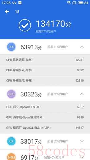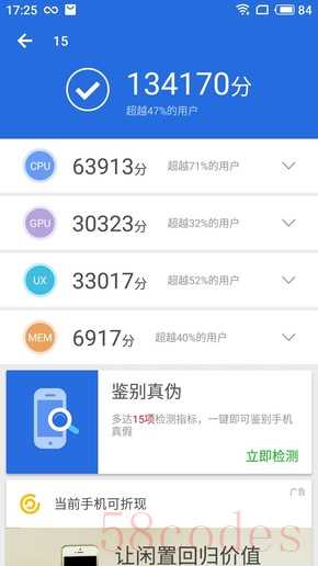 在安兔兔综合性能测试中,魅族15跑分达到了134170分,其中CPU跑分63913分,GPU跑分30323分。这样的性能可以保证魅族15流畅运行大多数热门应用、游戏,在多任务处理、游戏体验等方面拥有出色的表现。