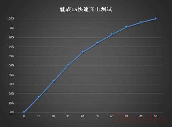 魅族15内置3000mAh容量电池,支持mCharge闪充,标配UP1220S快速充电器,最高充电功率达24W。实测中,魅族15半小时就充入了50%的电量,一小时充入了83%的电量,充满全部电量仅需一个半小时。市售支持快充的手机通常充满电需要100分钟以上,魅族15这个充电速度可以说相当快了。