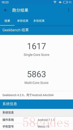 在Geekbench处理器测试中,魅族15的单核跑分为1617分,比OPPO R15整整高出100分,多核跑分则高达5863分。