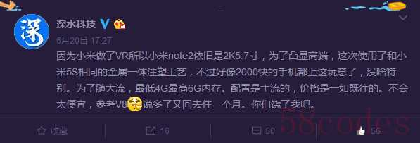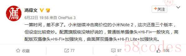 微博博主@馮偉文 昨天在微博爆料,小米note2将有三个版本分别是: