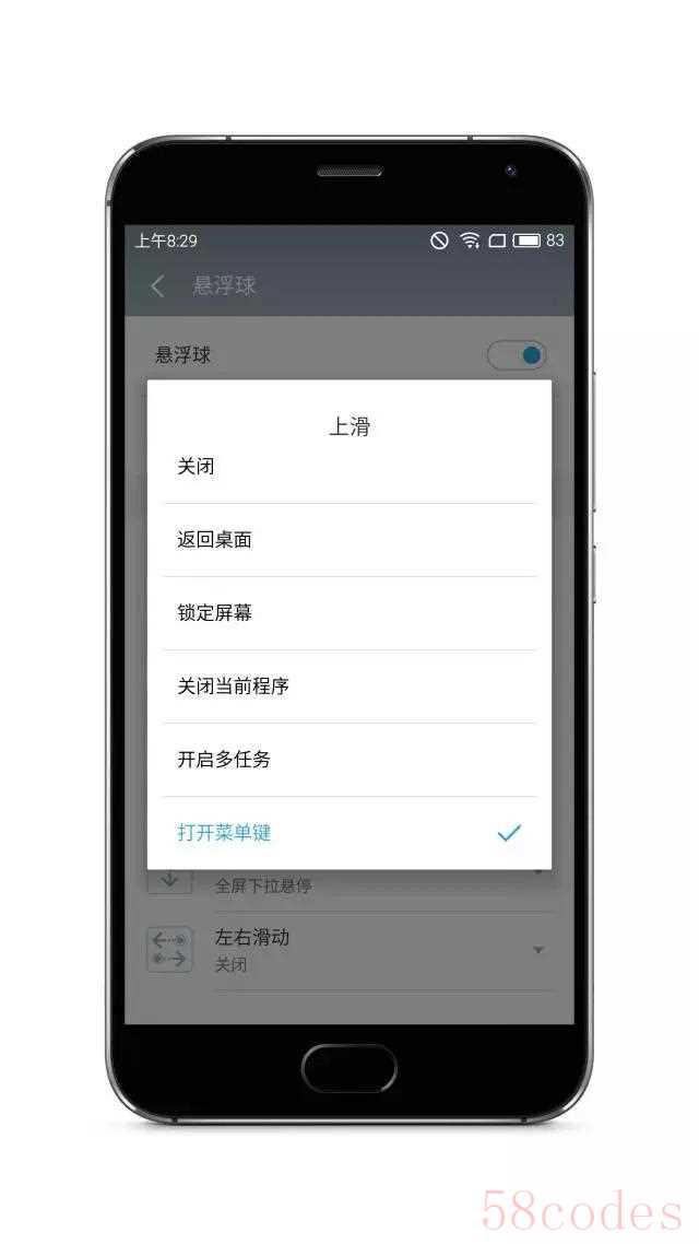 首先,点击进入手机“设置”—“辅助功能”—“悬浮球”—然后点击“上滑”,再将“菜单键”勾选上即可。