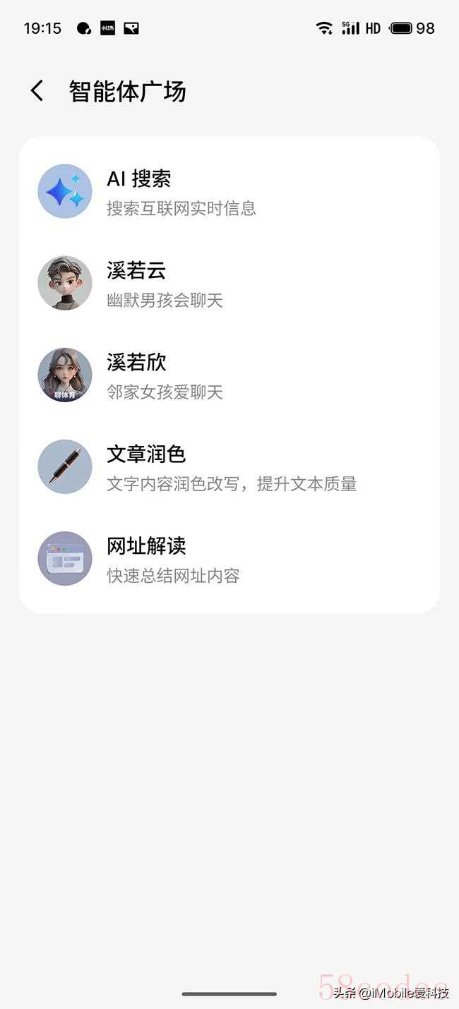 魅族Lucky 08的智能体验广场是一个非常不错的聚合功能,在这里你不仅快速AI搜索功能,你可以进行文本润色、网址内容提炼,甚至你还可以和AI角色进行语音聊天。