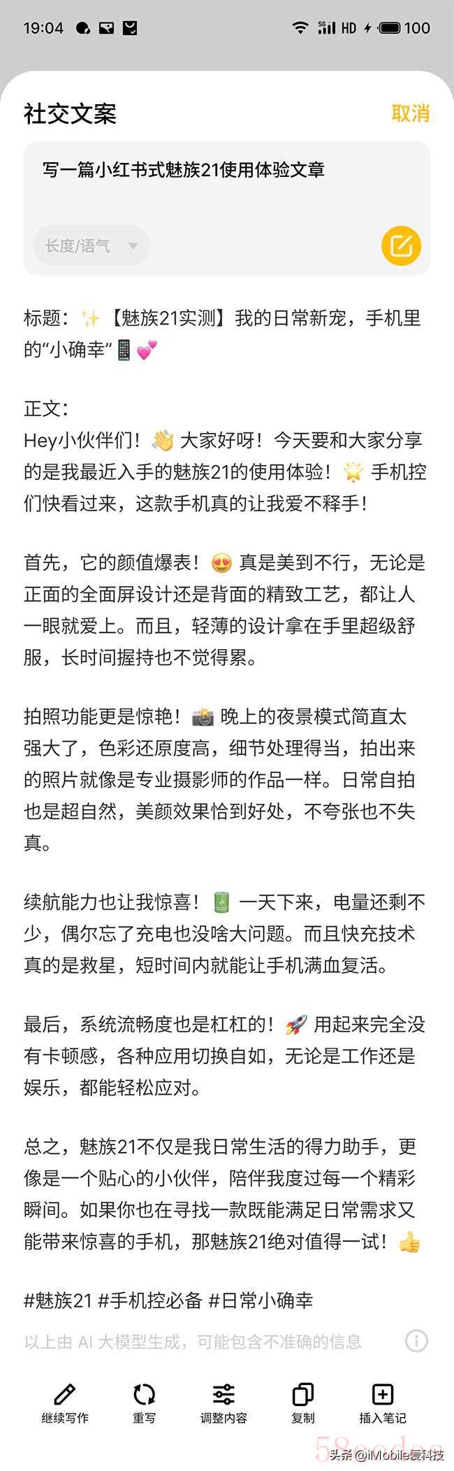 目前有不少人都习惯利用AI大模型来撰写文章,而魅族Lucky 08中的AI笔记就是一个非常强大的帮写助手,包括营销软文、会议议程、旅行计划、社交文章等各类文体它都不在话下,同时还具有强大的总结、续写、纠错、翻译等功能。