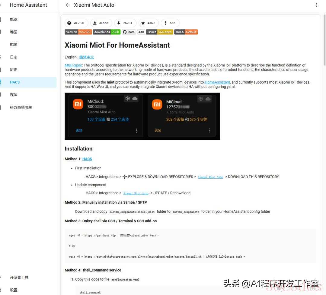 安装完成后,您需要配置米家集成。以下是具体步骤: