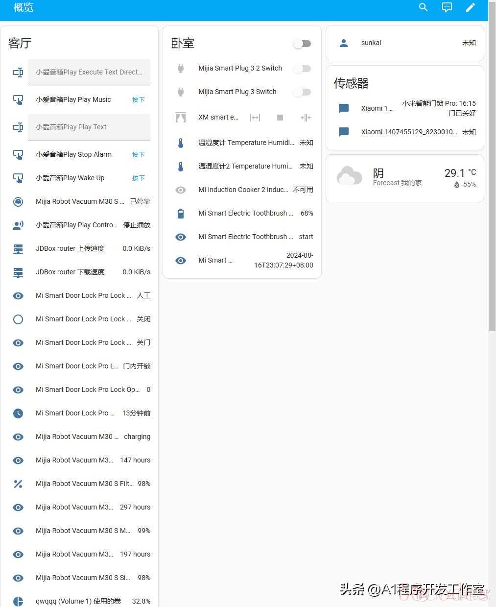配置完成后,你的米家设备就成功对接到了Home Assistant中。此时,你可以在Home Assistant的主页上查看并管理所有已添加的米家设备。通过主页,你可以进行一些基本的操作,例如开关灯、调节温度、查看传感器数据等。此外,Home Assistant还支持创建自动化规则和场景,使得设备之间的联动变得更加智能化和个性化。例如,你可以设置一个自动化规则,在检测到门窗传感器触发时,自动打开客厅的灯光;或者在检测到温度传感器低于设定值时,自动启动加热器。所有这些操作都可以在Home Assistant的自动化设置中轻松实现。