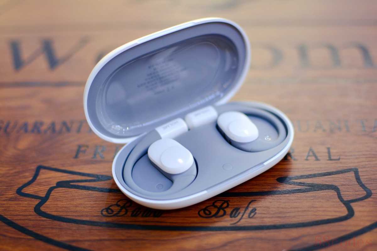打开充电盒,耳机静静地躺在里面,白色与灰色的经典配色,给人一种简约而不失优雅的感觉。