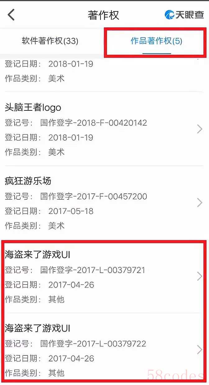 《海盗来了》拥有游戏UI两项作品著作权和一项软件著作权(图/天眼查)