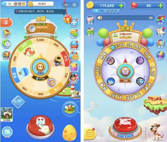 左:《海盗来了》游戏界面图;右:《猪来了》界面图(图/游戏截图)