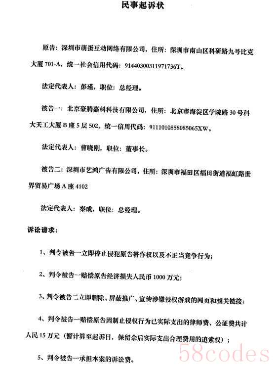 起诉状显示,豪腾嘉科未经萌蛋互动允许,大量使用与原告游戏实质近似的文字、图案以及游戏中的整体画面等行为,严重侵犯了萌蛋互动的著作权,同时构成不正当竞争。上述相关负责人表示: