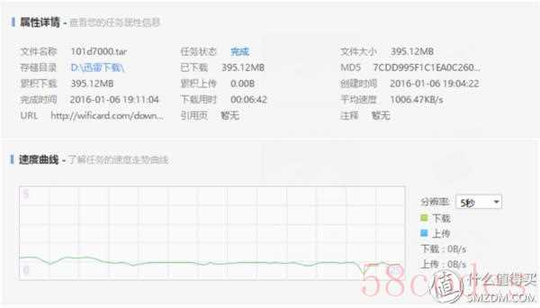 爱相机WiFi卡:平均下载速度1006.47KB/s,下载速度比较平稳,下载中速度接近1MB/s。
