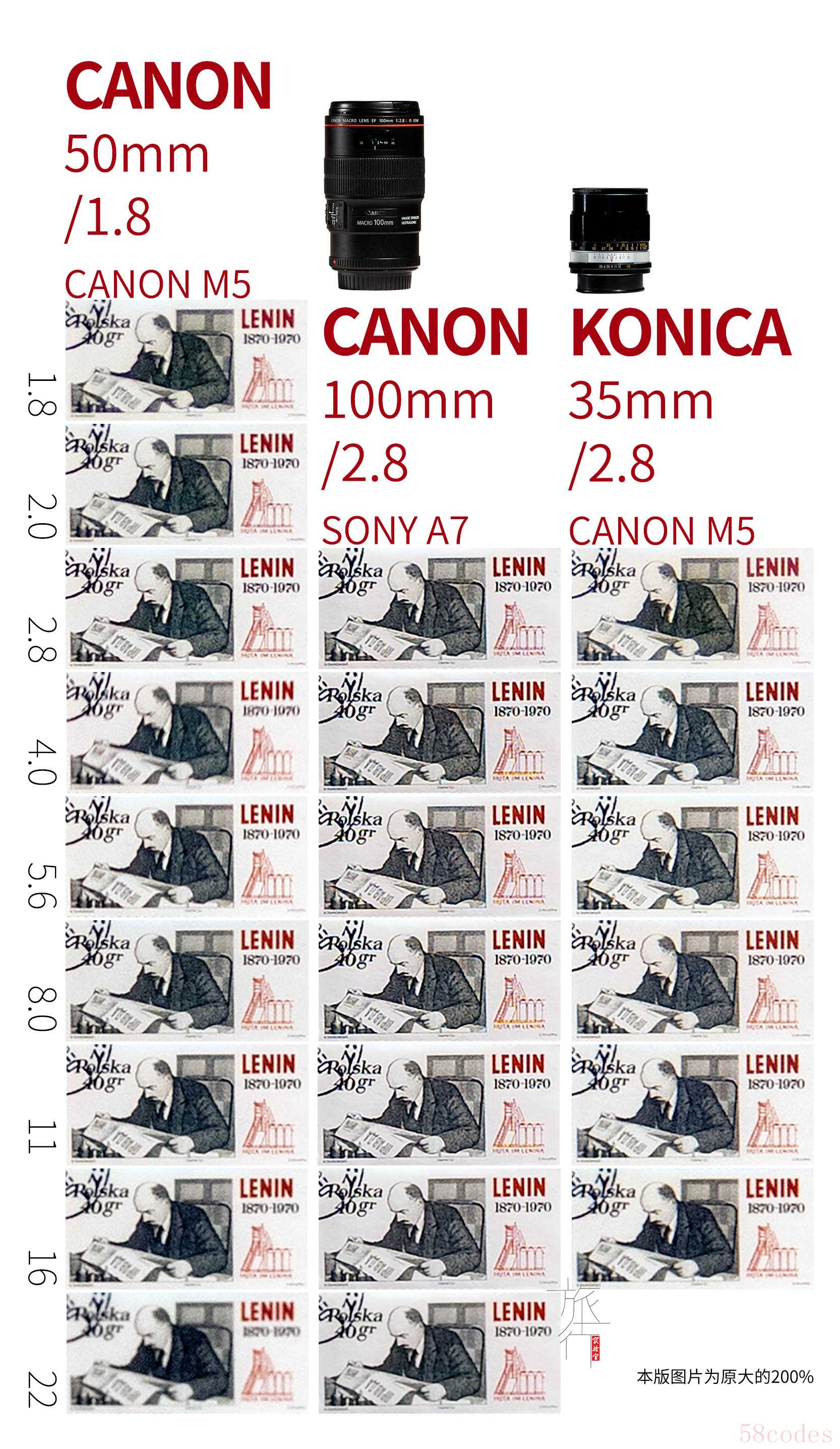 需要注意的是,佳能100mm用的是A7机身对应的2400万像素感光器,而小痰盂和柯尼卡用的都是M5机身,对应的是6240万像素。