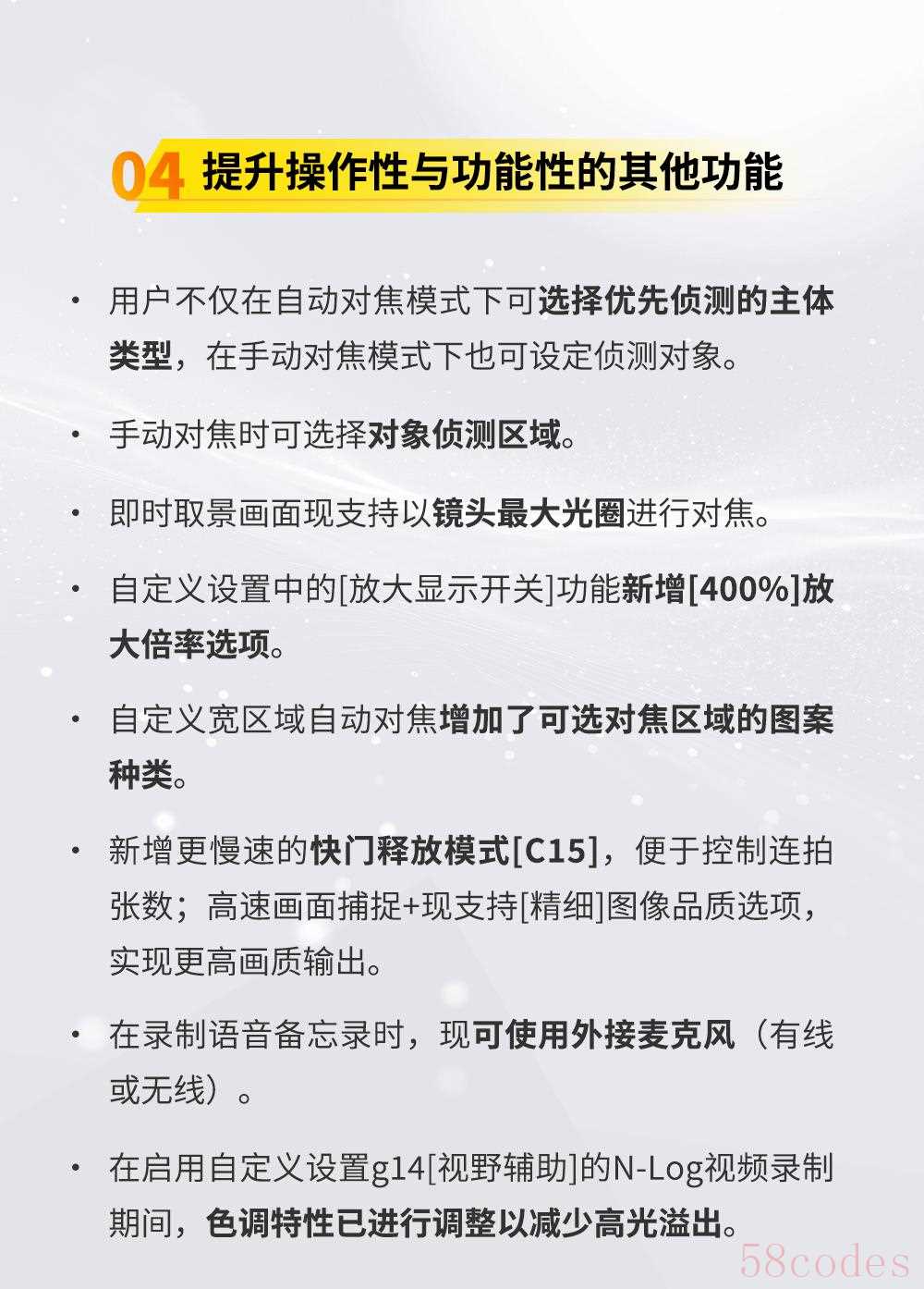 5.进一步改进操作性与功能性,使拍摄更快速、更高效。
