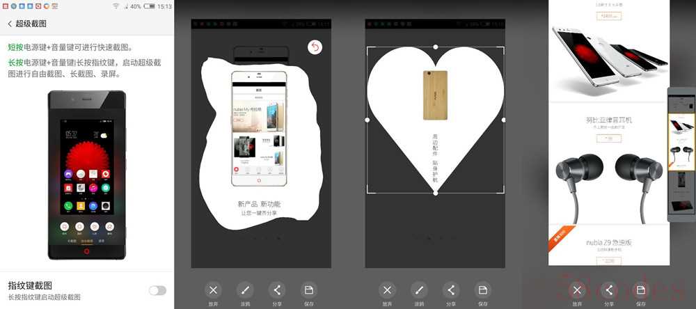 nubia UI中提供多种截屏方案,常规状态下短按组合件电源+音量减可以全屏截屏。长按该组合件进入高级截屏,长按指纹识别也能达到同种效果。在这里我可以截出各种规则和不规则的形状,甚至是滚动长截屏也不在话下。不过为了避免误触,指纹截屏功能我很少开启。暂不支持指纹支付成为痛点,期待官方的进一步更新。