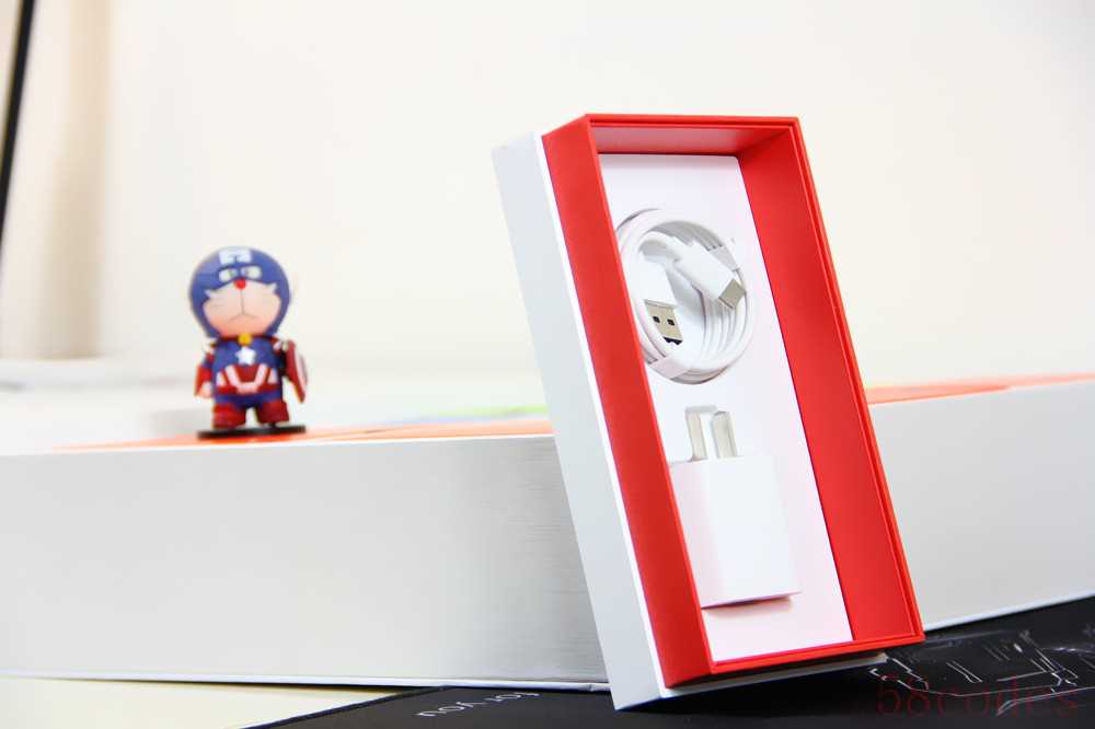传统天地盖包装并没有显露出高规格,清新和简约成为主旋律。正面logo十分醒目,红色点缀恰到好处。配件方面提供了Type-C数据线和5V 1.5A充电器,取卡针、说明书、保修卡三合一,被压在手机下。
