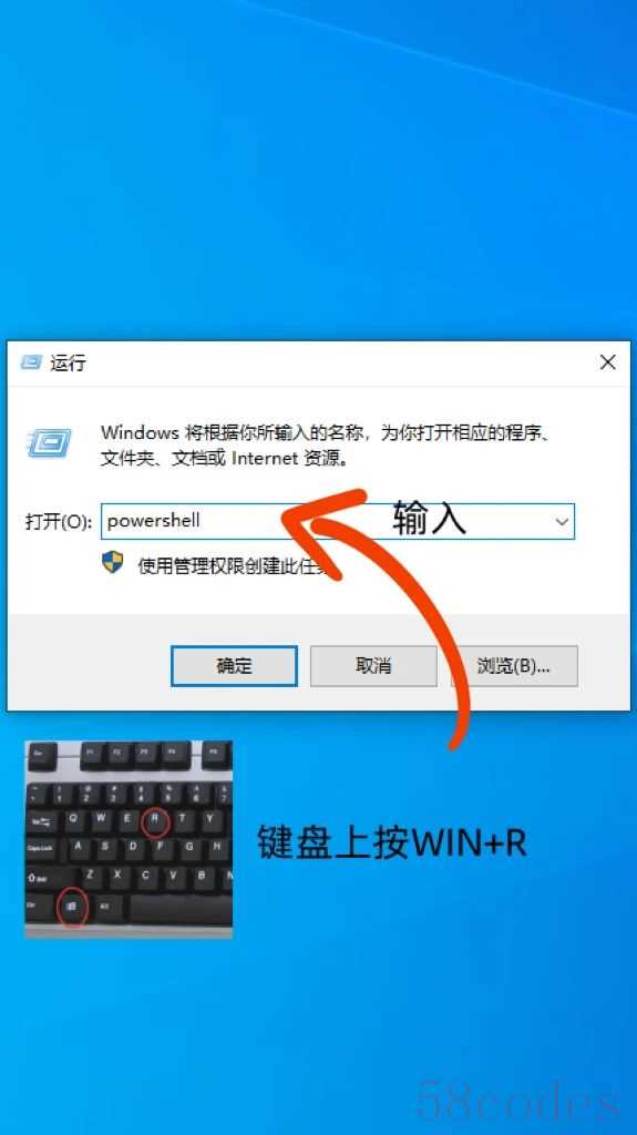 键盘上按win+R,输入powershell